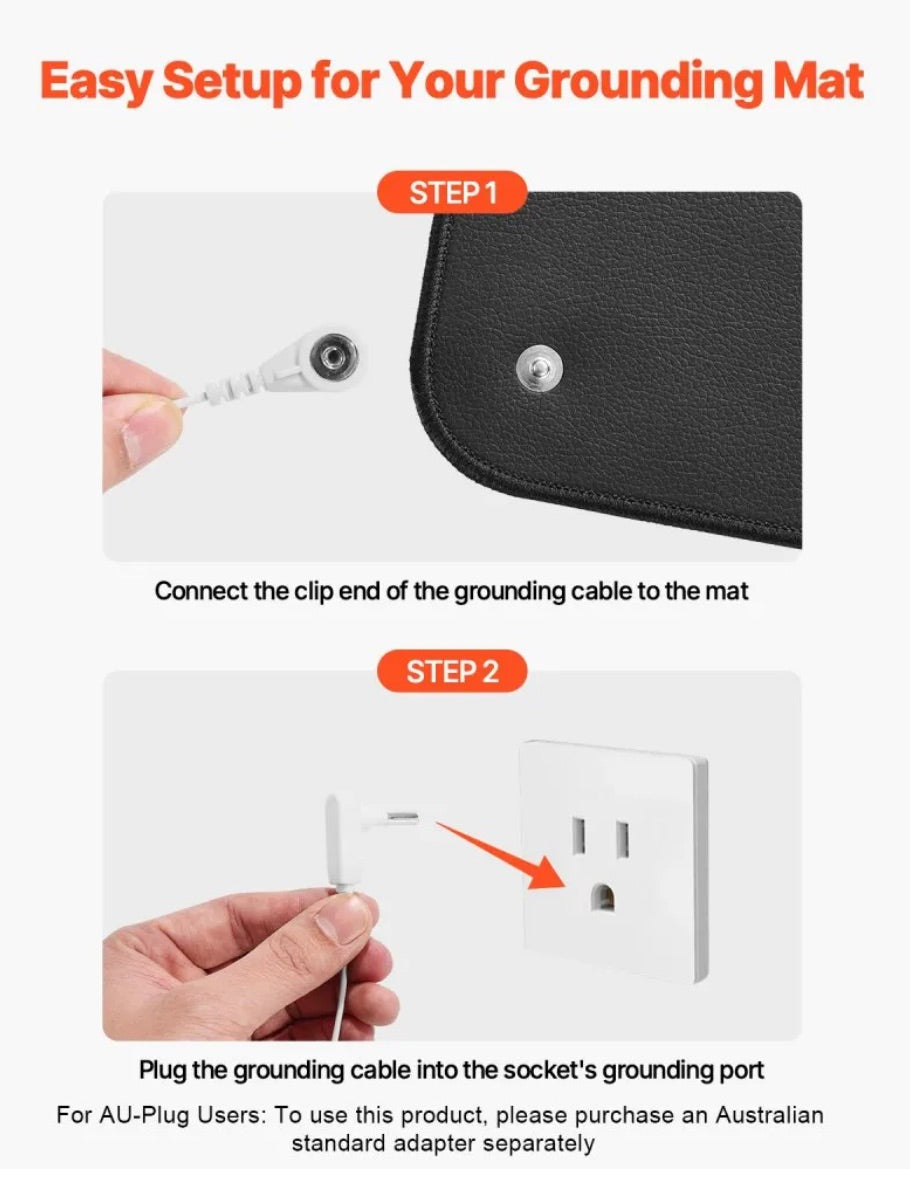 Grounding connects your body to the earth's natural energy, which helps neutralize harmful free radicals. While standing barefoot outside is one way to ground, our indoor grounding mat allows you to connect to the earth using a grounded electrical outlet. Electrical outlets are grounded to the earth through your home's wiring system, and when you use the mat, the earth's slight negative charge flows through the outlet to the mat, delivering potential benefits like improved sleep, reduced pain, and overall wellness.